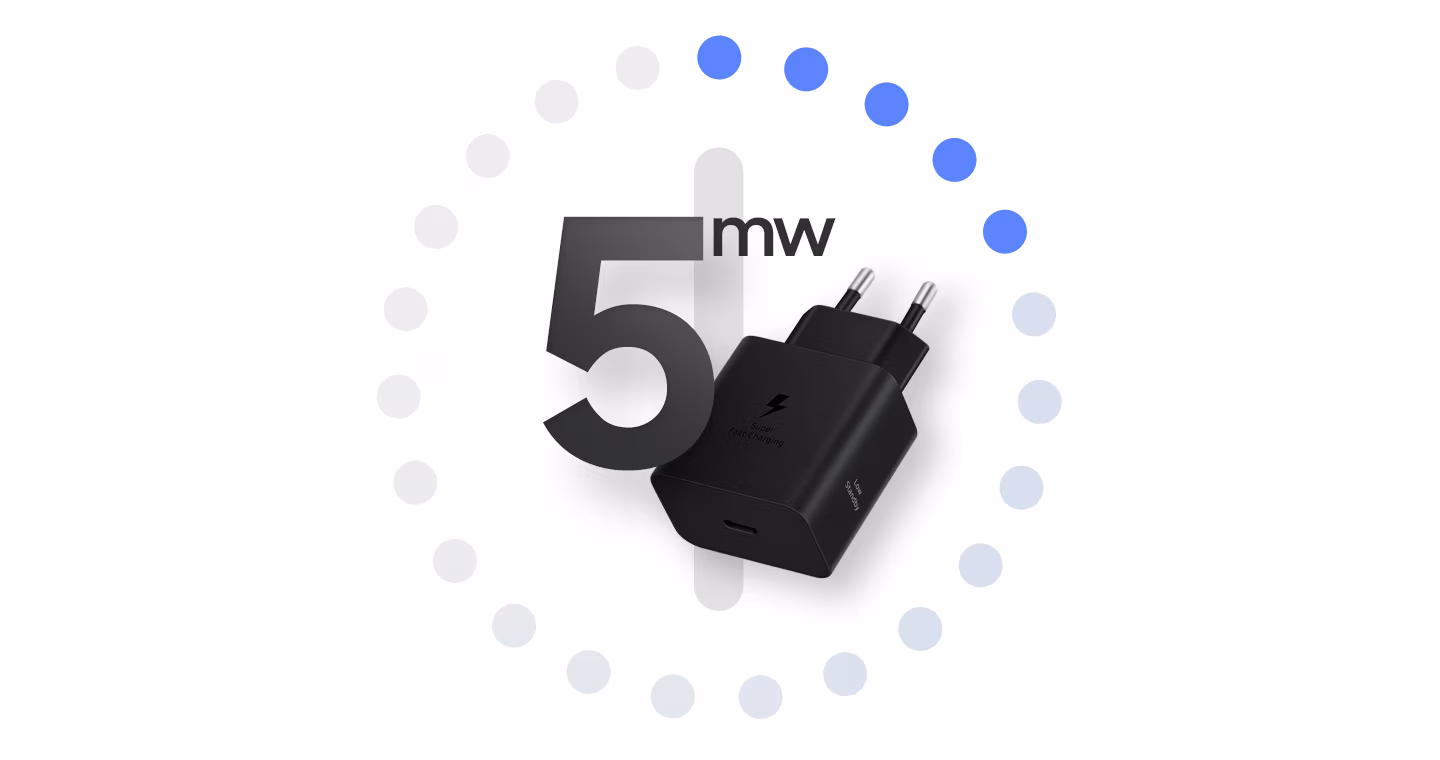 * Super Fast Charging (SFC) 2.0 requires a USB Power Delivery (PD) 3.0 compatible device supporting Direct Charging. Devices lacking USB PD 3.0 standard or Direct Charging will charge slower than SFC speed. Charging speed varies based on usage patterns, conditions, connected devices, and other factors. Charging performance may be affected by device model, cable quality, and environment. To optimize results, use genuine Samsung 5A cables provided in the original packaging. Compatibility with additional devices can expand over time.